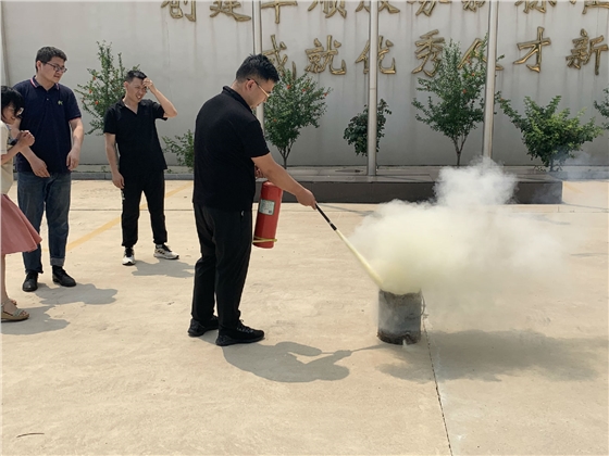 此次演練內(nèi)容包含火災(zāi)報(bào)警、人員疏散、初起火災(zāi)撲救等應(yīng)急處理,由車(chē)間主任郭軍學(xué)為大家講解手持式干粉滅火器的使用方法和火災(zāi)逃生的注意事項(xiàng)。